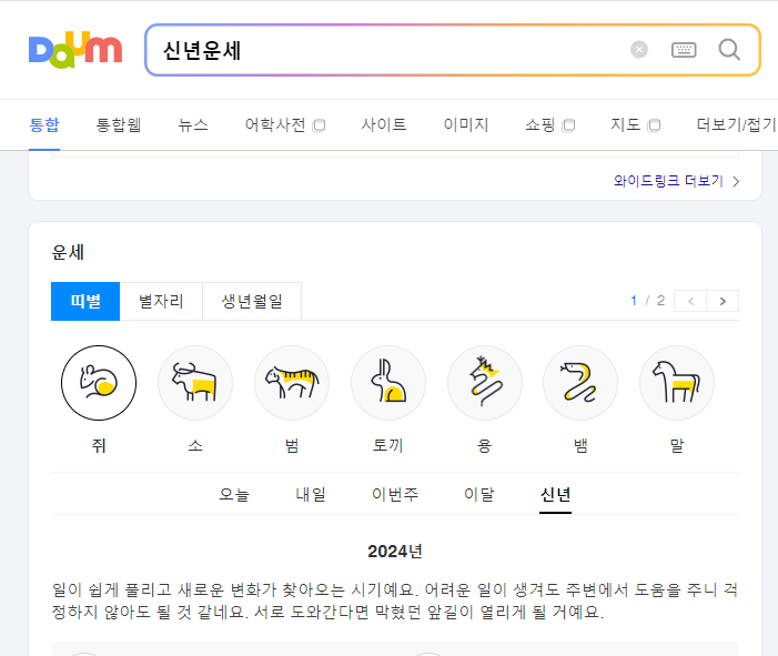 다음에서도 '신년운세'라고 검색하시면 확인 가능합니다.